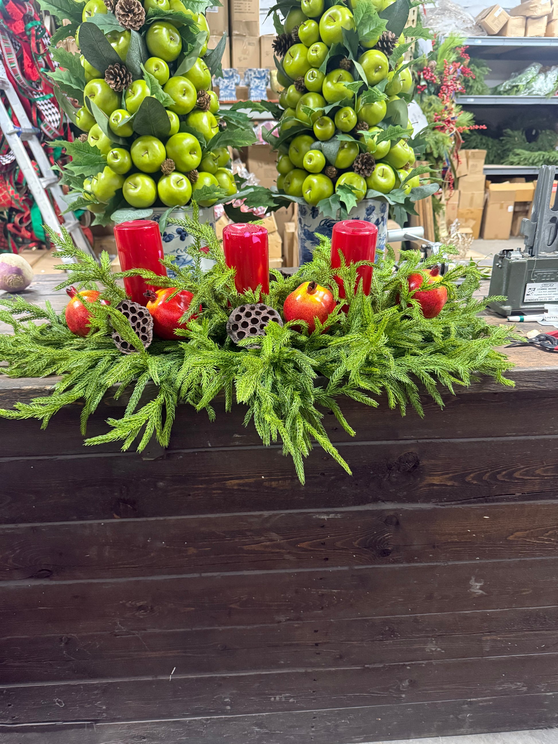 Freshly Cut. Real touch Norfolk Island pine triple centerpiece. 30-36 inches length. Centerpiece only. (GREENERY ONLY)