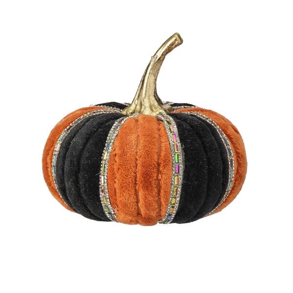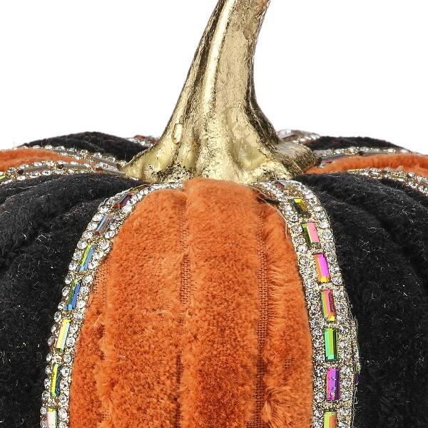 Orange & Black 8” Jeweled Velvet Pumpkin