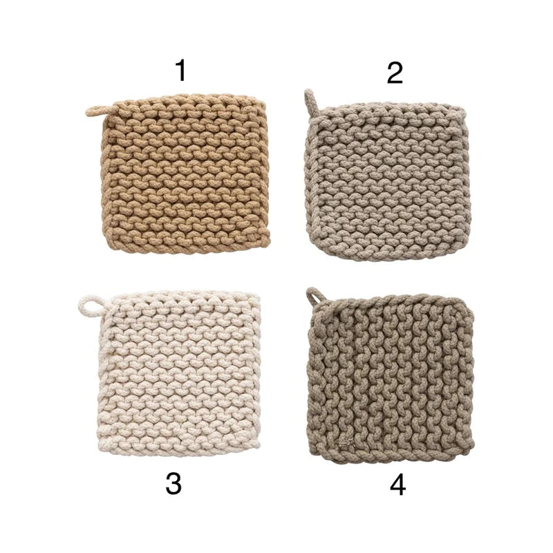 SET of 4 Cotton Crocheted Pot Holder - 4 colors